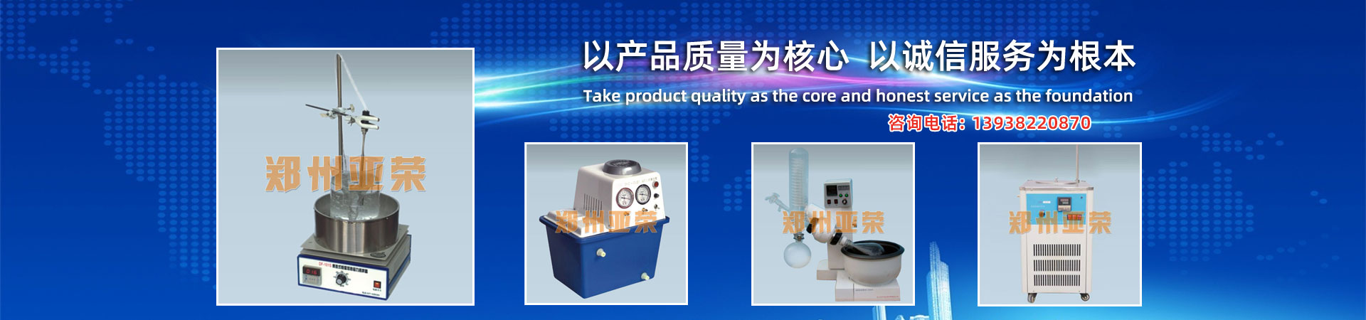 鄭州市亞榮儀器有限公司是主要銷售教學儀器的專業廠家,主要生產旋轉蒸發儀、雙層玻璃反應釜旋轉蒸發器循環水真空泵、玻璃儀器氣流烘干器低溫冷卻液循環泵真空抽濾器電熱鼓風干燥箱、真空干燥箱、水熱合成反應釜、高壓反應釜、數顯恒溫電熱套、高溫油浴鍋、磁力攪拌器、超聲波清洗器、水(油)浴鍋、冷凍干燥機、智能玻璃恒溫水浴、水槽,臺式高速離心機、紫外分析儀、控溫儀、振蕩器、微波化學反應器、顯微熔點測定儀、聚四氟乙烯攪拌棒、攪拌塞、攪拌子、升降臺等多種型號的教學儀器。